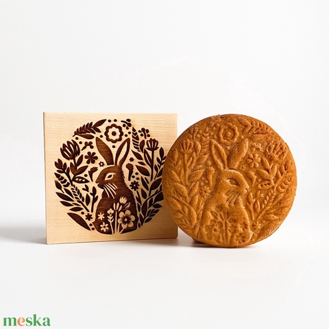 Nyuszi virággal sütipecsét - Linzerhez, mézeskalácshoz, spekulatius kekszhez