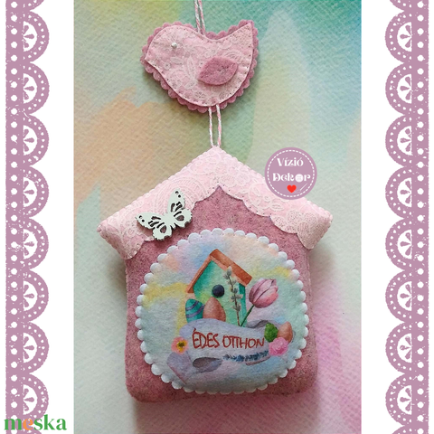 Filc Édes Otthon tavaszi házikó dísz