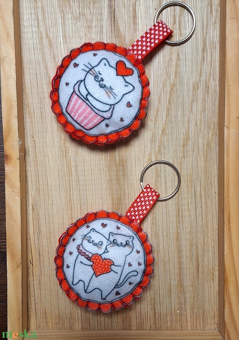 Filc szerelmes cicák kulcstartó , táskadísz, függődísz