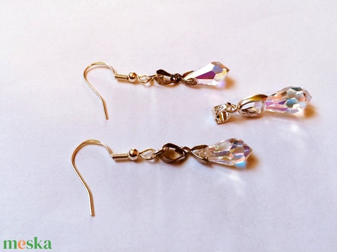 925 jelzett csiszolt kristály fülbevaló + medál szett könnycsepp forma