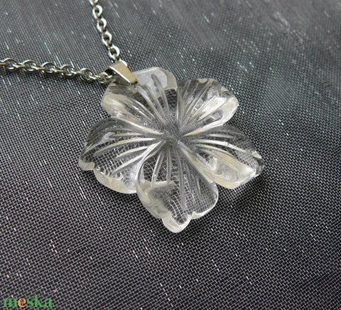 Orvosi acél szerelékre akasztottam ezt a különlegesen szép hegyikristály medált.