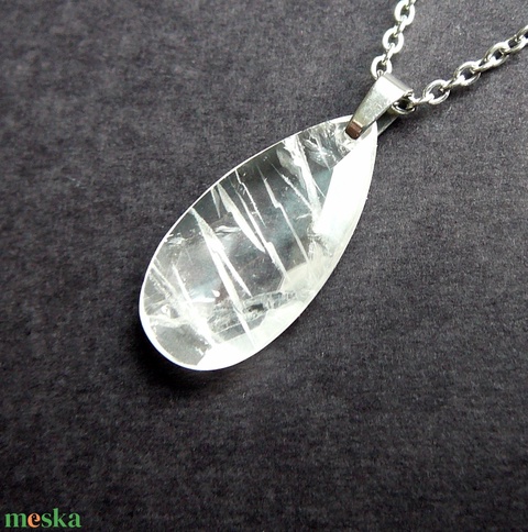 Orvosi acél szerelékre akasztottam ezt a különlegesen szép fazettált hegyikristály medált.