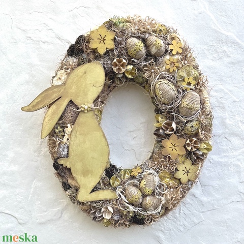 - Anyaga: koszorúalap, textil, száraznövény, termés, fa dekoráció, csipkeszalag, hungarocell tojás
