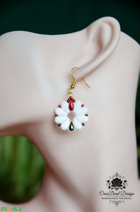 Creabead Design matyórózsa stílusú elegáns trikolor fülbevaló