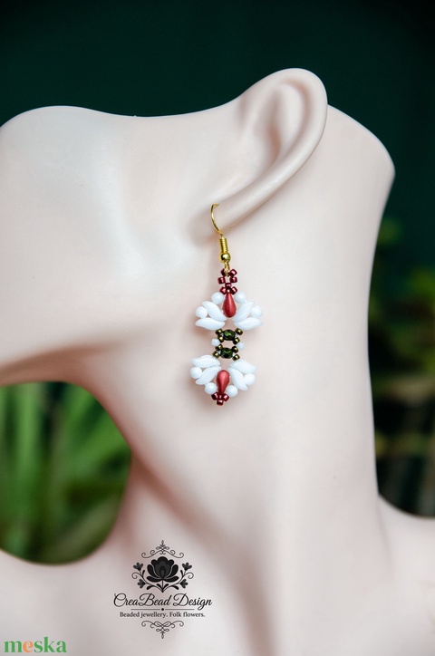 - Anyaga: stormduo japán gyöngy, minos francia gyöngy, toho japán kásagyöngy, miyuki japán kásagyöngy, miyuki japán cérna, fülbevaló alap, kitűző alap, ékszerragasztó
