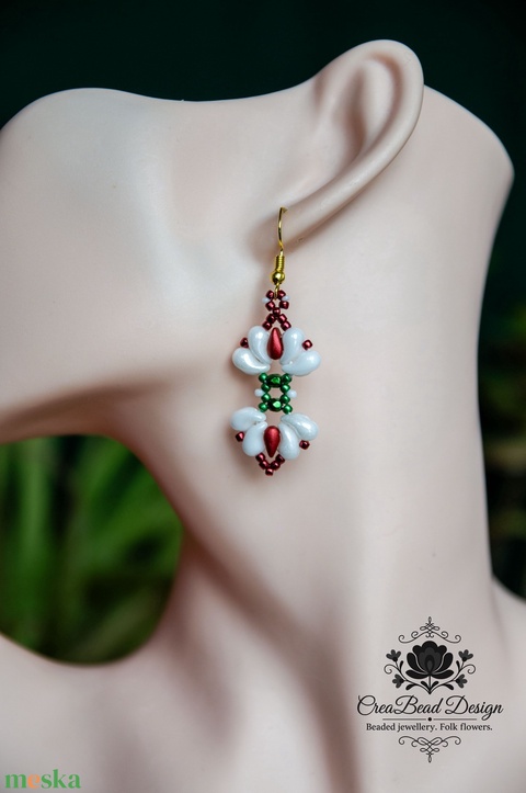 - Anyaga: stormduo japán gyöngy, minos francia gyöngy, toho japán kásagyöngy, miyuki japán kásagyöngy, miyuki japán cérna, fülbevaló alap, kitűző alap, ékszerragasztó