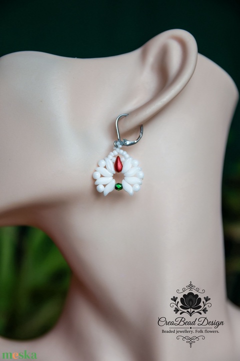 Creabead Design matyó tulipán stílusú elegáns trikolor fülbevaló