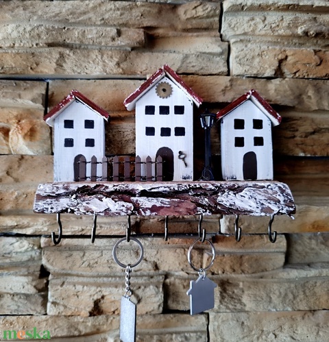 Fali kulcstartó rusztikus fán utca részlettel