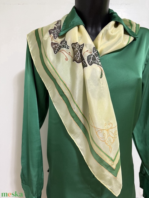 Kézzel festett 100% hernyóselyem kendő – „Hóvirág és Borostyán” (egyedi darab)