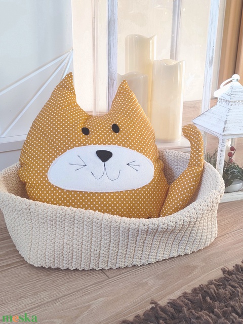 Vörös macska - cica párna - Cica Figura - Cicás díszpárna - Textil játék - Narancssárga Macska Textil figura