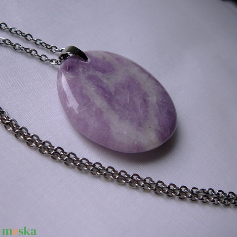 Orvosi acél szerelékre akasztottam ezt a különlegesen szép lepidolit medált.