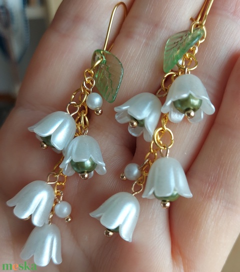 Tavaszi hosszú harangvirág gyöngyfülbevaló