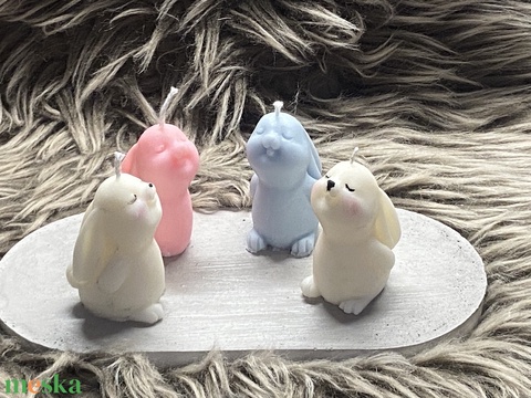- Anyaga: szójaviasz, zselégyertya, üveg, nyúl, nyuszi