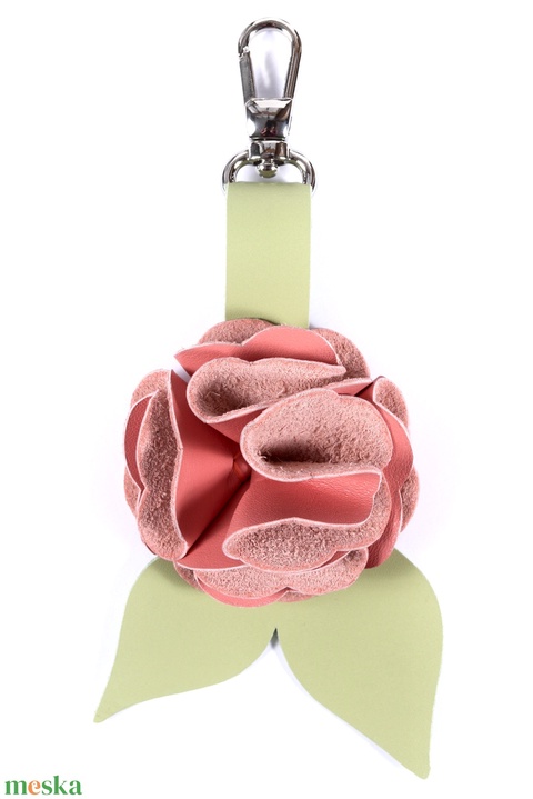 Rózsa kulcstartó bőrből (világos barack+fűzöld)