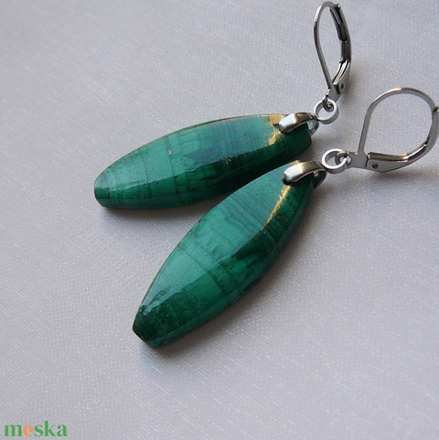 Orvosi acél szerelékre akasztottam ezt a két különlegesen szép malachit medált.