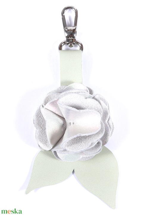 Rózsa kulcstartó bőrből (gyöngyházfényű+világos pasztell zöld)