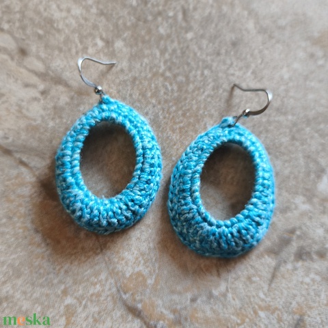 Horgolt ovális türkiz fülbevaló