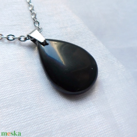 Orvosi acél szerelékre akasztottam ezt a különlegesen szép fekete obszidián medált.