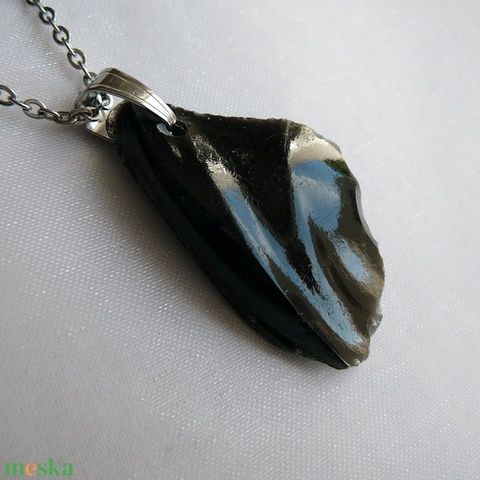 Orvosi acél szerelékre akasztottam ezt a különlegesen szép nyers fekete obszidián medált.