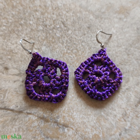 Horgolt lila rombusz fülbevaló