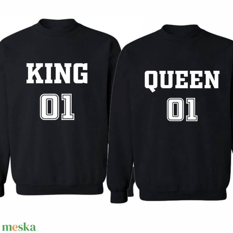 KING and QUEEN number 01 páros pulóver szett, minőségi egyedi pulcsik valentin napra, évforulóra.