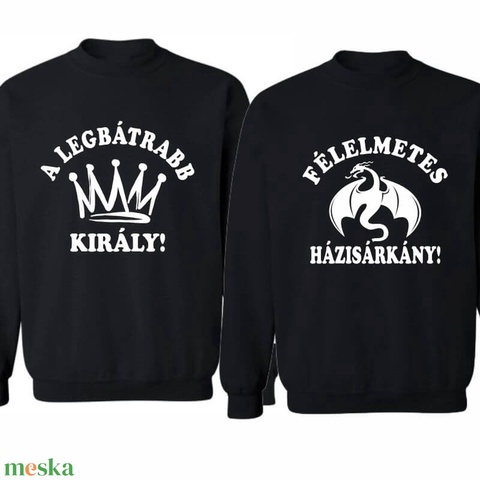 A legbátrabb király és a félelmetes házisárkány páros pulóver szett, minőségi egyedi pulcsik valentin napra, évforulóra.