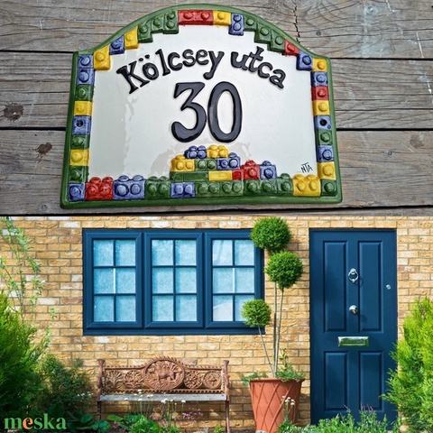 Legó-kerámia ház és utca névtábla
