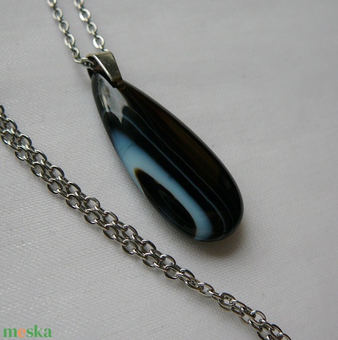 Orvosi acél szerelékre akasztottam ezt a különlegesen szép ónix medált.
