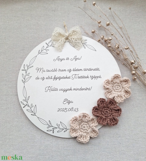 - Anyaga: fa alap, pamut fonal, csipke, akvarell papír