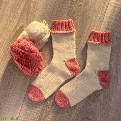 Kézzel kötött gyapjú zokni „ eperfagylalt” Méret: 36-37