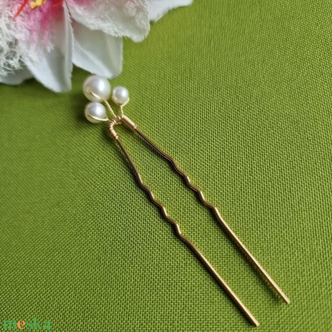 ESKÜVŐ HAD243 - Arany színű 3 gyöngyös hajtű, hajdísz