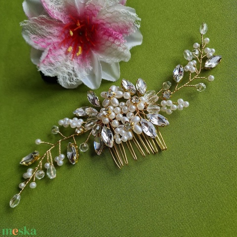 ESKÜVŐ HAD251 - Menyasszonyi kristályköves, gyöngy virágos hajfésű, hajdísz