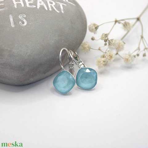 Swarovski kristályos, egyedi készítésú, lekerekített négyszög alakú fülbevaló – Nyári szellő