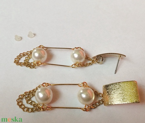 Art Deco stílusú modern fülbevaló fehér gyöngy arany szín