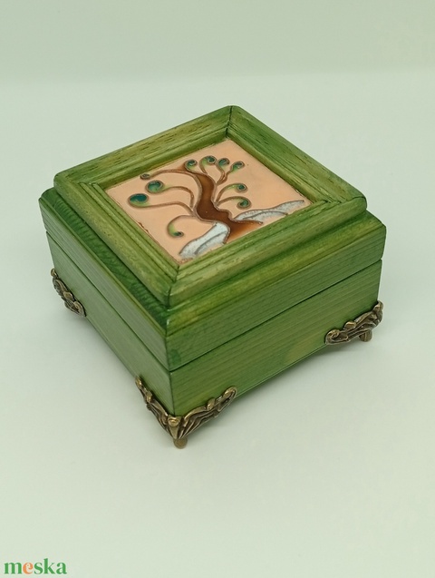 Életfás fa ékszerdoboz-rekeszes tűzzománc képpel