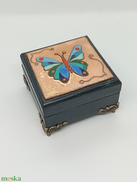 Pillangós fa ékszerdoboz-tűzzománc betéttel
