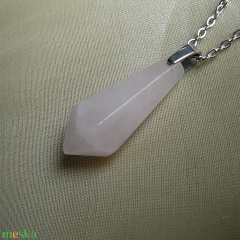 Orvosi acél szerelékre akasztottam ezt a különlegesen szép rózsakvarc medált.