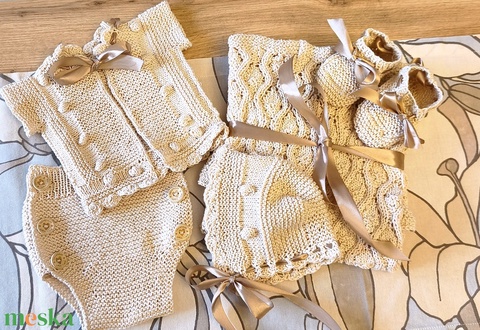 Komplett bébi szett, baba takaró, kis nadrág, felső, sapka és lábbeli