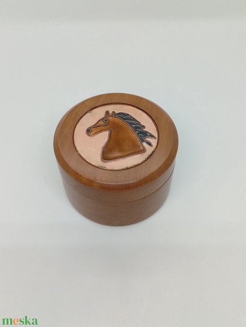 Fa ékszerdoboz-lovas tűzzománc betéttel