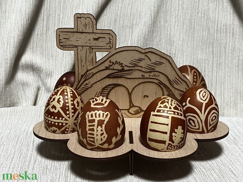 Húsvéti fa tojásállvány Üres sír motívummal – szakrális asztali dekoráció
