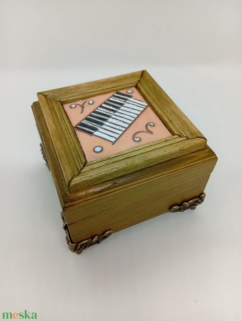 Zongorás fa ékszerdoboz-tűzzománc betéttel