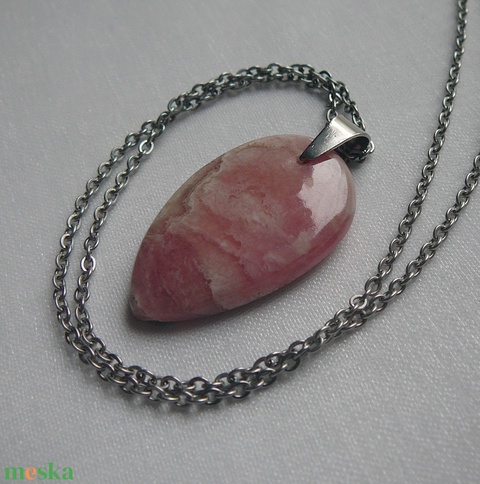 Orvosi acél szerelékre akasztottam ezt a különlegesen szép rodokrozit medált.