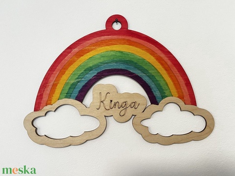 Egyedi névre szóló szivárványos fa névtábla – vidám ajtódekoráció gyerekszobába