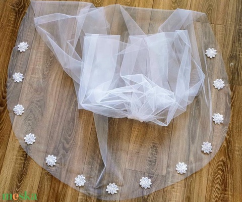 FTY107/108 - 1 rétegű, szegetlen, hímzett virág csipkés menyasszonyi fátyol 300x150cm - hófehér, ekrü