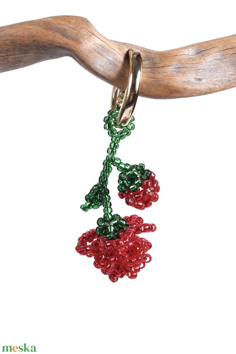 Rózsa táskadísz gyöngyből (piros+zöld)