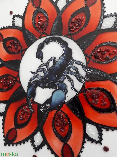 Skorpiós mandala üvegfestmény