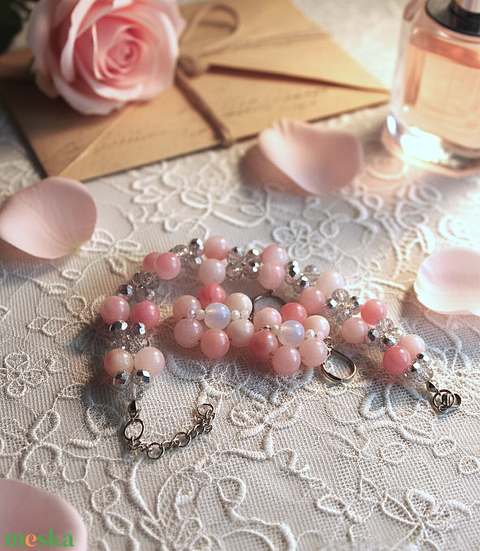 Édes Harmónia: Rózsaszín Jáde és Opál Csillogás – Karkötő és Virág Fülbevaló Szett
