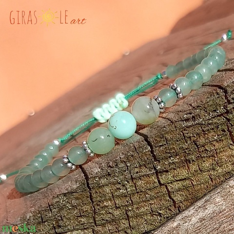 - Anyaga: krizopráz, aventurin, sterlingezüst, damilos poliészter zsinór
