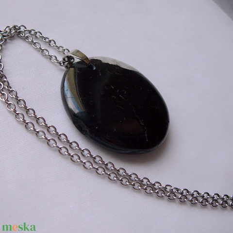 Orvosi acél szerelékre akasztottam ezt a különlegesen szép fekete turmalin - sörl medált.
