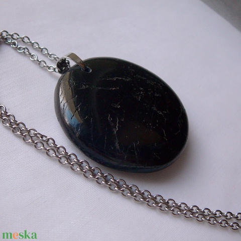 Orvosi acél szerelékre akasztottam ezt a különlegesen szép fekete turmalin - sörl medált.